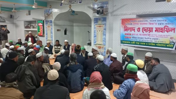 খাগড়াছড়ির গুইমারায় হাজীপাড়া সমাজ পরিচালনা কমিটি’র উদ্যোগে দেশনেত্রী বেগম জিয়ার সুস্থ্যতা কামনায় দোয়া ও মিলাদ মাহফিল অনুষ্ঠিত হয়েছে।৭ ডিসেম্বর রবিবার বাদ মাগরিব উপজেলার বিজিবি হাসপাতালের সামনে হাজীপাড়া জামে মসজিদে তিন তিনবারের প্রধানমন্ত্রী, রাষ্ট্রের অতি গুরুত্বপূর্ণ ব্যক্তি দেশনেত্রী বেগম খালেদা জিয়ার সুস্থ্যতা কামনায় এ দোয়া ও মিলাদ মাহফিল অনুষ্ঠিত হয়।হাজীপাড়া সমাজ পরিচালনা কমিটির সভাপতি, মোঃ ইকবালের এর সভাপতিত্বে দোয়া অনুষ্ঠানে প্রধান অতিথি হিসেবে উপস্থিত ছিলেন খাগড়াছড়ি জেলা বিএনপির যুগ্নসম্পাদক এড. আব্দুল মালেক মিন্টু।অনুষ্ঠানে বিশেষ অতিথি হিসেবে আরো উপস্থিত ছিলেন, উপজেলা বিএনপির সভাপতি সাইফুল ইসলাম সোহাগ, সাবেক সভাপতি মোঃ ইউসুফ, সিনিয়র সহ-সভাপতি আবুল কাশেম, সাধারন সম্পাদক মোঃ মাহাবুব আলী, যুগ্মসম্পাদক আব্দুল লতিফ, সাংগঠনিক সম্পাদক আইয়ুব আলী ডালিম, হাফছড়ি ইউনিয়ন বিএনপির ভারপ্রাপ্ত সাধারন সম্পাদক ফারুক হোসেন সুমন, যুগ্ম সম্পাদক দিদারুল হৃদয় সহ উপজেলা, ইউনিয়ন ও ওয়ার্ড বিএনপির নেতৃবৃন্দরা।এছাড়াও শিক্ষক, সাংবাদিকসহ অত্র এলাকার শতশত আপামর জনসাধারণের উপস্থিতে হাজিপাড়া জামে মসজিদের খতিব মাওলানা সাইফুল ইসলাম দেশনেত্রী বেগম জিয়ার রোগমুক্তি ও শারিরীক সুস্থ্যতার জন্য দোয়া পরিচালনা করেন।