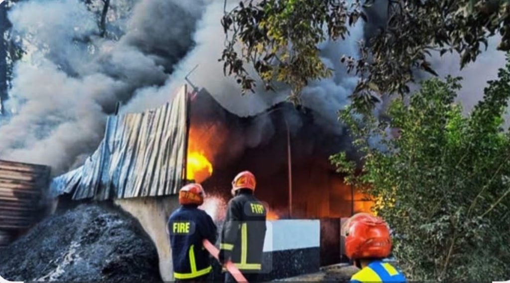 গাজীপুরের বাঘের বাজার এলাকার কেমিক্যাল কারখানায় আগুন।