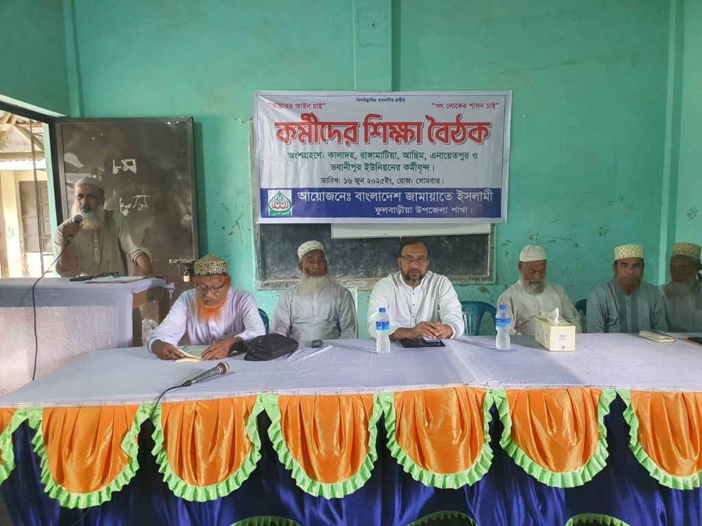 আজ সকাল ৭ টায় ফুলবাড়িয়া উপজেলার” কালাদহ দাখিল মাদ্রাসায়” অনুষ্ঠিত হলো কর্মীদের শিক্ষা বৈঠক। অনুষ্ঠানটি আয়োজন করেন ফুলবাড়িয়া উপজেলার ৫টি ইউনিয়ন( আছিম,ভবানীপুর,এনায়েতপুর,কালাদহ ও রাঙামাটিয়া)ইউনিয়নের বাংলাদেশ জামায়াতে ইসলামীর কর্মীদের নিয়ে।