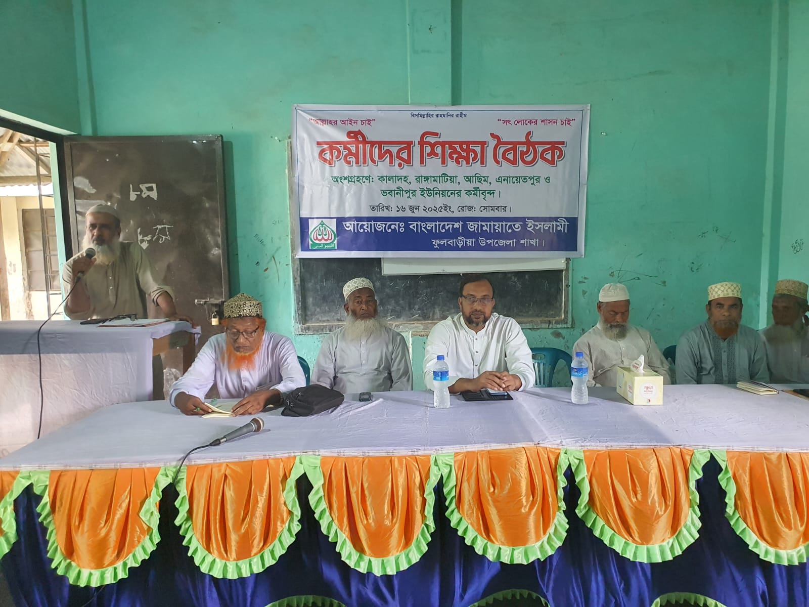 আজ সকাল ৭ টায় ফুলবাড়িয়া উপজেলার" কালাদহ দাখিল মাদ্রাসায়" অনুষ্ঠিত হলো কর্মীদের শিক্ষা বৈঠক। অনুষ্ঠানটি আয়োজন করেন ফুলবাড়িয়া উপজেলার ৫টি ইউনিয়ন( আছিম,ভবানীপুর,এনায়েতপুর,কালাদহ ও রাঙামাটিয়া)ইউনিয়নের বাংলাদেশ জামায়াতে ইসলামীর কর্মীদের নিয়ে।