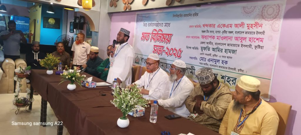 মতবিনিময় সভায় সভাপতিত্ব করেন কুষ্টিয়া শহর জামায়াতের আমীর জনাব এনামুল হক এবং সঞ্চালনায় ছিলেন শহর শাখার সেক্রেটারি জনাব শামীম শাহরিয়ার।