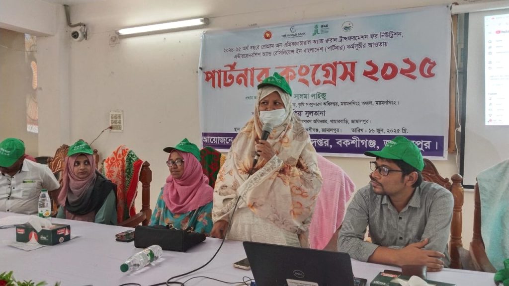 জামালপুরের বকশীগঞ্জ উপজেলা কৃষি সম্প্রসারন অধিদপ্তরের আয়োজনে ২০২৪-২৫ অর্থবছরের প্রোগ্রাম অন অ্যাগ্রিকালচার এন্ড রুরাল ট্রান্সফরমেশন ফর নিউট্রিশন এন্টারপ্রেনরশিপ এন্ড রেজিলিয়েন্স ইন বাংলাদেশ (পার্টনার) এর আওতায় “পার্টনার কংগ্রেস” অনুষ্ঠিত হয়েছে।