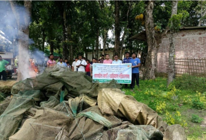 জলঢাকায় চায়না জাল পুড়িয়ে দিলেন এসিল্যান্ড।