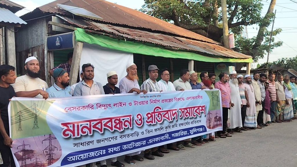 গজারিয়ায় বসতঘর ও তিন ফসলি কৃষি জমির উপর দিয়ে একটি বেসরকারি প্রতিষ্ঠান এর বৈদ্যুতিক লাইন ও টাওয়ার নির্মাণ প্রকল্পের জন্য