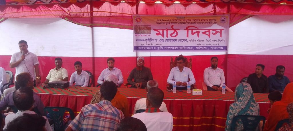 অনুষ্ঠানে প্রধান অতিথি ছিলেন কৃষিবিদ ড. মোহাম্মদ মোশাররফ হোসেন, অতিরিক্ত পরিচালক, সিলেট অঞ্চল কৃষি সম্প্রসারণ অধিদপ্তর সুনামগঞ্জ, কৃষি সম্প্রসারণ অধিদপ্তরের আয়োজনে অনুষ্ঠিত এই অনুষ্ঠানে তিনি বলেন
