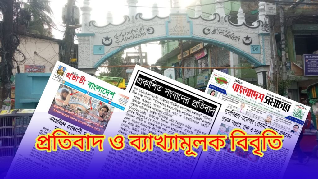 “দৈনিক বাংলাদেশ সমাচার” পত্রিকার ২২/০৫/২০২৫ ইং তারিখের তিন নম্বর পাতায় “খাদেমদের সহযোগিতায় বায়েজিদ বোস্তামী মাজারে মাদকের আস্তানা, সংবাদ সংগ্রহে বাধা ও সাংবাদিকদের হুমকি” শিরোনামে প্রকাশিত সংবাদটি সম্পূর্ণ মিথ্যা, বানোয়াট এবং উদ্দেশ্যপ্রণোদিত। মাজার শরীফ পরিচালনা কমিটি ও খাদেমদের পক্ষ থেকে উক্ত সংবাদের তীব্র প্রতিবাদ ও নিন্দা জানানো হয়েছে। এর প্রতিবাদে ক্রাইম রিপোর্টার মোঃ ছৈয়দুল করিম ও দৈনিক প্রভাতী বাংলাদেশ স্টাফ রিপোর্টার মোঃ কামাল উদ্দিন বলেন, উল্লেখিত অভিযোগ তদন্তের জন্য চট্টগ্রাম মেট্রোপলিটন পুলিশ কমিশনার মহোদয়ের কার্যালয় হতে বায়েজিদ বোস্তামী থানাকে দায়িত্ব প্রদান করা হয়। পরবর্তীতে থানার ওসি (তদন্ত) মোহাম্মদ মাহফুজুর রহমান উভয় পক্ষের সঙ্গে বৈঠক করেন। উক্ত বৈঠকে মাজারের খাদেমদের পক্ষ থেকে হাবিবুর রহমান, রবিউল, জাহাঙ্গীর আলম, সরোয়ার আলম, মোতালেবসহ আরও কয়েকজন উপস্থিত ছিলেন।