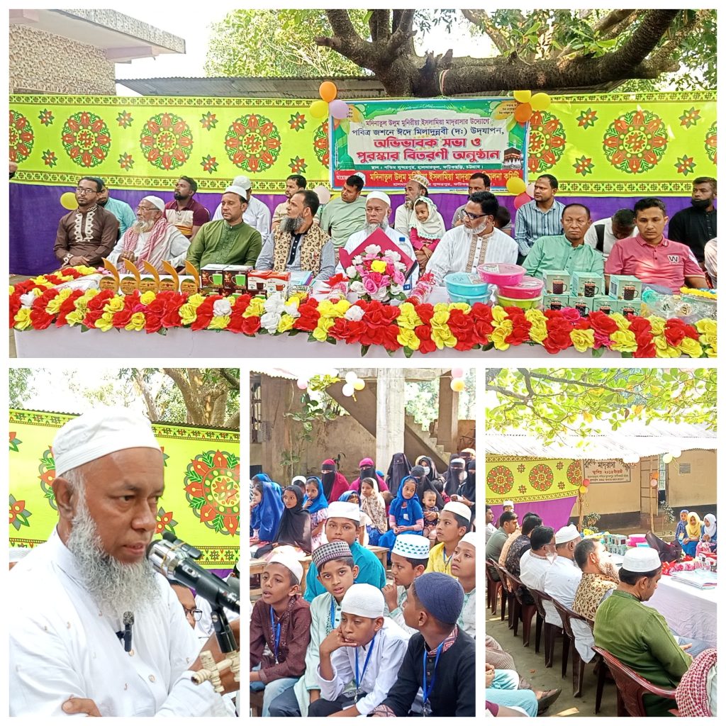 অত্র মাদ্রাসার প্রধান শিক্ষক মাওলানা মঈনুউদ্দীন সাহেবের সভাপতিত্বে অত্র মাদ্রাসার শিক্ষক মোঃ হোসেনের সঞ্চালনায় বিশেষ অতিথি হিসেবে উপস্থিত ছিলেন বিবিরহাট বাজারের ব্যবসায়ি:আবছার উদ্দিন বাবুল, সুন্দরপুর উচ্চ বিদ্যালয়ের সম্মানিত প্রধান শিক্ষক: জনাব মুহাম্মদ ফরিদ আহম্মেদ, সমাজসেবক ও শিক্ষানুরাগী:জনাব মুহাম্মদ গিয়াস উদ্দিন সাহেব, সমাজসেবক ও শিক্ষানুরাগী: জনাব হাসান সাহেব, চট্টগ্রাম ব্যাক ব্যাংকের কর্মকর্তার:জনাব মুহাম্মদ ফয়েজ উল্লাহ, বিবিরহাট বাজারে ব্যবসায়ি:জনাব মুহাম্মদ শওকত, সুন্দরপুর উচ্চ বিদ্যালয়ে শিক্ষক:মুহাম্মদ মাঈনুল উদ্দিন, আজিমপুর সরকারি প্রাথমিক বিদ্যালয়ে শিক্ষক:মিনহাজুল আবেদীন সোহেল, অভিভাবক থেকে:সারওয়ার আলম শাহিন, মুহাম্মদ ইমরুল হাসান ইমন, শুভেচ্ছা বক্তব্য :দিয়েছেন মাওলানা মুহাম্মদ শফিউল আলম আয়োজক মদিনাতুল উলুম মুনিরীয়া ইসলামিয়া মাদরাসার দায়িত্বশীলরা জানান, শিক্ষার্থীদের নৈতিক উন্নয়ন, ধর্মীয় জ্ঞান বৃদ্ধি এবং মহানবী (সা.)-এর প্রতি ভালোবাসা জাগ্রত করতেই এ আয়োজনের উদ্যোগ নেওয়া হয়। আগামী দিনগুলোতেও এ ধরনের ইতিবাচক কার্যক্রম অব্যাহত থাকবে বলে তারা আশাবাদ ব্যক্ত করেন। বর্ণিল সাজসজ্জা, বেলুন, ব্যানার ও পরিবেশনায় দিনব্যাপী পুরো এলাকা এক উৎসবমুখর পরিবেশে পরিণত হয়।