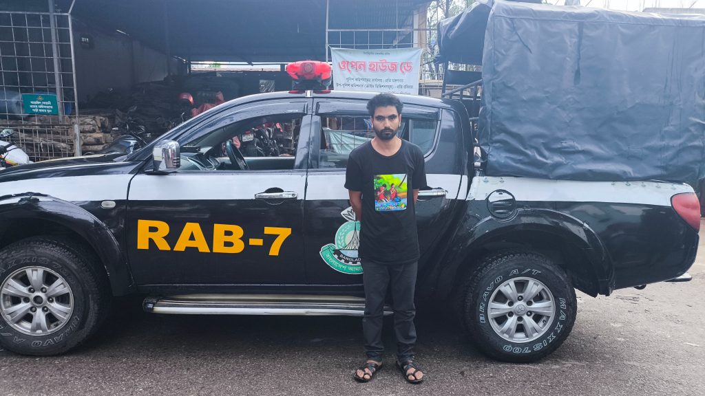 র্যাব-৭, চট্টগ্রাম গোপন সংবাদের ভিত্তিতে জানতে পারে যে, চট্টগ্রাম মহানগরীর বায়েজিদ বোস্তামী থানার মামলা নং-৪২, তাং-১৮ মে ২০২৫ ইং, ধারা- ২০০৯ সানের সন্ত্রাস বিরোধী আইন এর ৬(২) এর (ই)/৬(২) এর (ঈ)/৭/৯/১০/১১/১২/১৩, , তৎসহ ১২০(বি), পেনাল কোড ১৮৬০ মামলার সন্দিগ্ধ পলাতক আসামী সুজন বড়ুয়া চট্টগ্রাম মহানগরীর বায়েজিদ বোস্তামী থানা এলাকায় অবস্থান করছে। উক্ত তথ্যের ভিত্তিতে গত ৩০ জুন ২০২৫ ইং তারিখে আনুমানিক ১৬০০ ঘটিকায় র্যাব-৭, চট্টগ্রাম এর একটি আভিযানিক দল চট্টগ্রাম মহানগরীর বায়েজিদ বোস্তামী থানাধীন জালালাবাদ কুলগাঁও এলাকায় অভিযান পরিচালনা করে আসামী সুজন বড়ুয়া প্রকাশ সাইমন (২৯), পিতা- মৃত অশোক বড়ুয়া, সাং- সাঁওতাল পাড়া, থানা- লক্ষীছড়ি, জেলা-খাগড়াছড়ি’কে আটক করতে সক্ষম হয়।