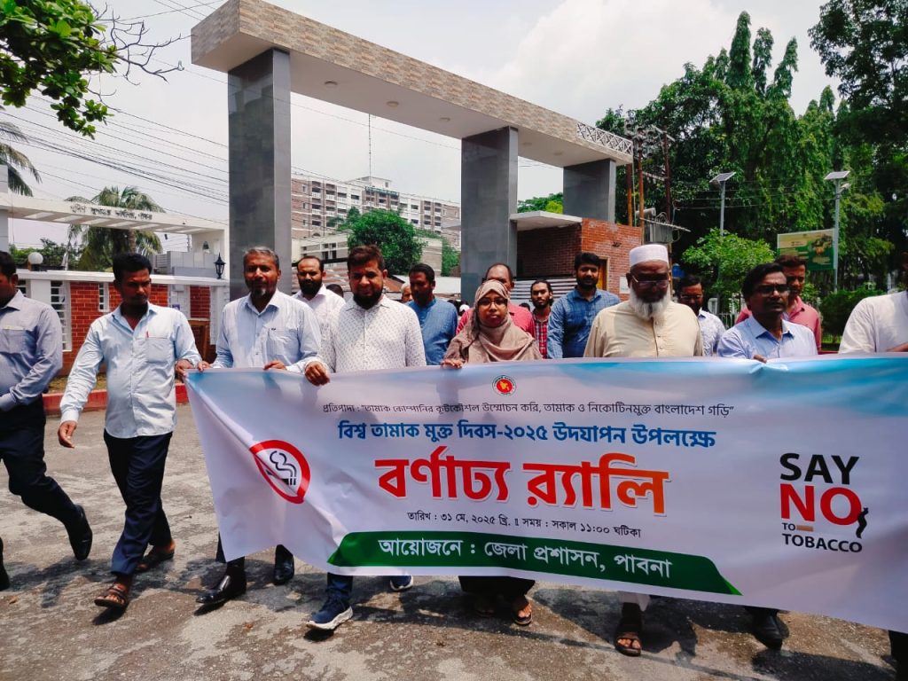 বিশ্ব তামাকমুক্ত দিবস ২০২৫ উপলক্ষে পাবনায় বর্ণাঢ্য র্যালি অনুষ্ঠিত