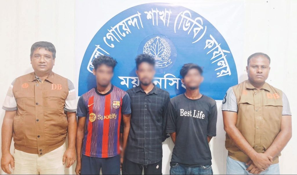 ময়মনসিংহ পুলিশ সুপার কাজী আখতার উল আলম এর সার্বিক তত্বাবধানে, অতিরিক্ত পুলিশ সুপার (অ’প’রা’ধ), ময়মনসিংহ এর দিকনির্দেশনায় এবং অফিসার ইনচার্জ, জেলা গোয়েন্দা শাখা, ময়মনসিংহ এর নেতৃত্বে এসআই (নিঃ) পিন্টু কুমার রায় সংগীয় ফোর্সসহ অ’ভি’যা’ন পরিচালনা করে ময়মনসিংহ জেলার কোতোয়ালী মডেল থানাধীন বড় কালিবাড়ী সংলগ্ন এস.কে হাসপাতাল এর সামনে পাঁকা রাস্তার উপর হইতে ১৩ জুলাই ২০২৫ খ্রিঃ তারিখ ২০.১৫ ঘটিকায় ১৫ গ্রাম হে’রো’ই’ন’সহ মা’দ’ক ব্যবসায়ী আ’সা’মী ১। নিহাদ ইসলাম জ্যাম (২২), পিতা-মোঃ সাইফুল ইসলাম, মাতা-শামছুর নাহার, সাং-পাটগুদাম আটআনি পুকুরপাড়া, ২। রফিকুর ইসলাম সনেট (২১), পিতা-মৃত দুলু, মাতা-মোছাঃ আনোয়ারা বেগম, সাং-মাসকান্দা গংসার মোড়, ৩। মোঃ রনি মিয়া (২৬), পিতা-মোঃ নজরুল ইসলাম, মাতা-মোছাঃ হুসনেয়ারা খাতুন, সাং-৩১নং চর ঈশ্বরদিয়া, সর্ব থানা-কোতোয়ালী, জেলা-ময়মনসিংহদেরকে গ্রে’ফ’তা’র করা হয়।