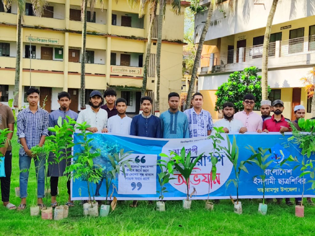 পরিবেশ রক্ষা ও সবুজ বাংলাদেশের প্রত্যয়ে “মাসব্যাপী বৃক্ষরোপণ অভিযান–২০২৫”-এর অংশ হিসেবে বাংলাদেশ ইসলামী ছাত্রশিবির, বাঞ্ছারামপুর উপজেলা শাখার উদ্যোগে বৃক্ষরোপণ ও চারা বিতরণ কর্মসূচি অনুষ্ঠিত হয়েছে।