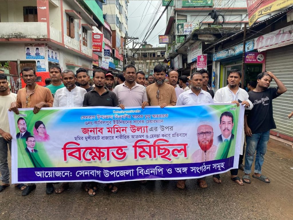 সেনবাগ উপজেলা বি,এন,পির সাবেক যুগ্ন আহবায়ক ও ৬নং কাবিলপুর ইউনিয়ন পরিষদের সাবেক ২ দুইবারের নির্বাচিত চেয়ারম্যান মমিন উল্ল্যার উপর হামলা ও শারীরিকভাবে হেনেস্তা করার প্রতিবাদে ( মন্নান গ্রুপ) সেনবাগ উপজেলা বিএনপির,যুবদল,ছাত্রদলের উদ্যোগে সেনবাগ উপজেলা পৌরশহরে এক বিশাল বিক্ষোভ মিছিল ও প্রতিবাদ সভা করেন। মিছিলে বিভিন্ন স্লোগানে স্লোগানে তীব্র নিন্দা ও প্রতিবাদ জানান, এবং প্রতিবাদ সভায় বক্তব্য রাখেন সংবাদ উপজেলা ছাত্রদলের সাবেক সাধারণ সম্পাদক ফখরুল ইসলাম টিপু। সাবেক ছাত্রনেতা টিপু বলেন, আমাদের নেতা আব্দুল মান্নান বলেছেন হিংসা দলাদলি ও সন্ত্রাসী রাজনীতি আমরা করি না,আমরা সন্ত্রাস-চাঁদাবাজ দখলদারদের বিরুদ্ধে প্রতিবাদ করি। বিক্ষোভ মিছিলে আরো উপস্থিত ছিলেন -সাবেক ছাত্রনেতা মনির হোসেন (জুলেট),মহিন কমিশনার,মামুন মেম্বার,শেখ আহমেদ ও রবিউল ইসলাম তুহিন সহ নেতৃবৃন্দ।মিছিল এবং প্রতিবাদ সভা থেকে জেলা যুবদলের নেতৃবৃন্দের প্রতি দোষী ব্যক্তিদের বিচারের দাবি জানান।