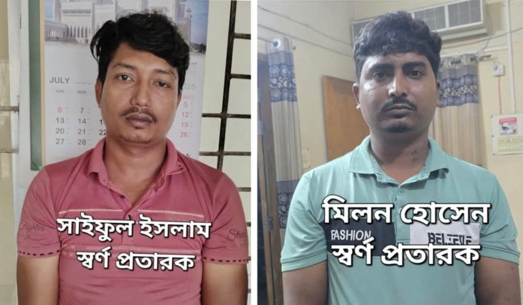 সেনবাগ থানায় আধা ভরি স্বর্ণালংকারসহ ০২ জন স্বর্ণ নকল প্রতারক চক্র গ্রে,ফ,তা,র।